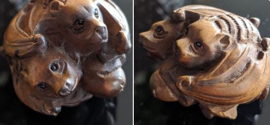 Japanese bat netsuke made of boxwood. Like in Chinese culture a symbol of luck.